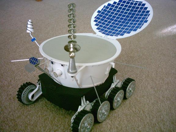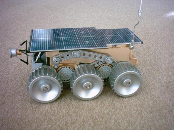 Oben: fahrtüchtiges Modell des US Marsrovers Sojourner, Maßstab 1/3 Unten: fahrtüchtiges Modell des russischen Mondfahrzeugs Lunochod I, Maßstab 1/14